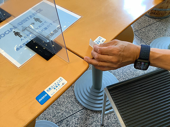施工が完了した椅子には施工済ステッカーを貼らせていただきます。