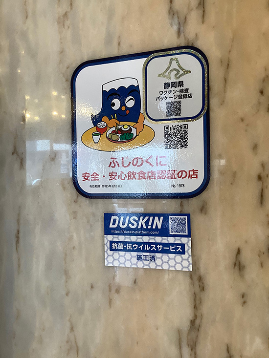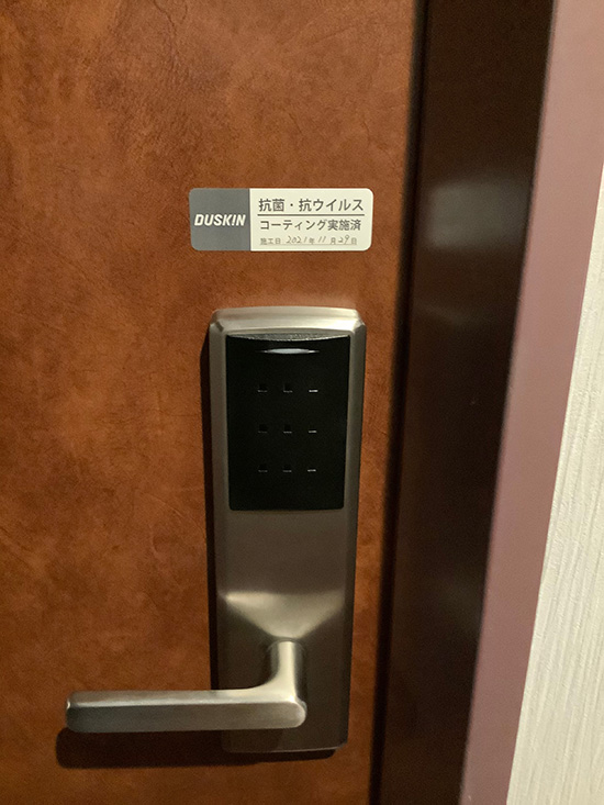 【公式サイトはこちら】当ホテルでは、コロナ禍での来館者様に安心快適な居住を提供するためにあらゆる対策を整え最高のおもてなしをお約束いたします。その中でダスキンサービスマスターの技術提供を受けています。硬質面コーティング、抗菌・抗ウィルスサービスは全館のドアノブに施工してあり接触感染回避の安全性を担保しております。また、毎日の清掃にも耐えれる耐久性のあるシリカ性コーティングも導入の決め手でもあります。